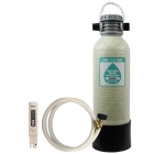 Compact and lightweight at only 18 pounds, this deionizer measures 6 ¾" in diameter by 22" in height. The unit contains ¼ cubic feet of high grade virgin mixed bed resin, and is easy to hook up or remove depending on your application. The unit comes complete with the deionizer, 4' high pressure hose, a hand-held TDS meter, and a cap/plug for the inlet/outlet.