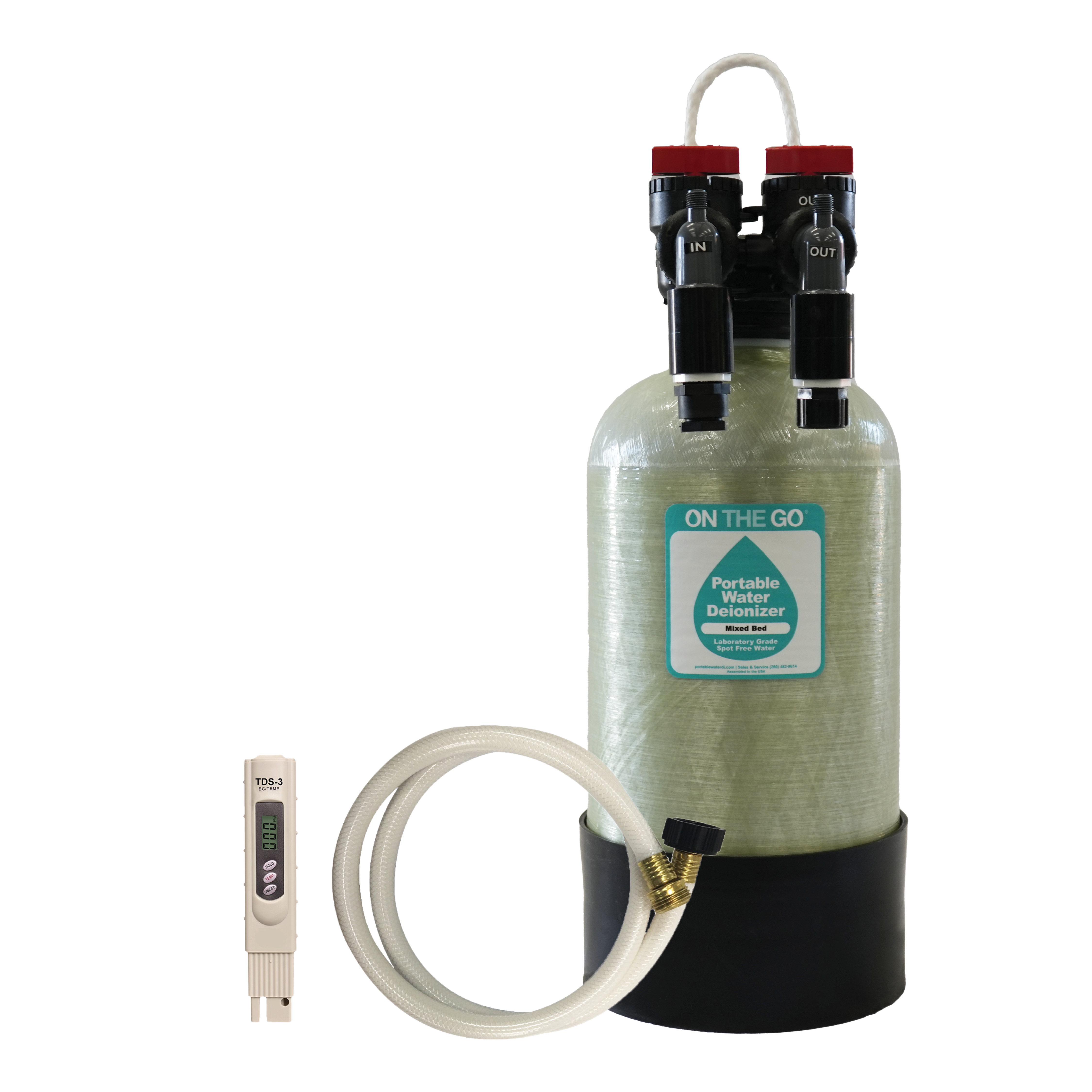 While still being compact like the Mixed Bed Standard, this unit is the same height and twice the capacity. It's filled with 1/2 cubic foot of mixed bed resin and works great in the garage, laboratory, on the road, or anywhere you need deionized (DI) or spot free water.