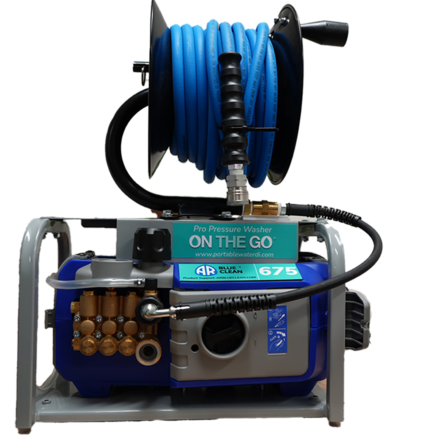 The AR675-PRO Electric Pressure washer is an all in one professional pressure washer with mount. This unit is constructed on a compact metal bracket and features a top mounted 50' hose reel. This ruggedly constructed and thoughtfully designed unit has all your work needs in mind. Large radial on/off switch is visible and simple to operate. The AR675-PRO is built with the detailer and enthusiast in mind for sleek, simple, and functional operation. When its time to make adjustments, fine tune your pressure with glycerin filled precision pressure gauge with unloader. This unit additionally features a convenient suction system hose w/filter for any detergent needs that may arise.
